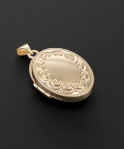 9ct Yellow Gold Patterned Oval Shaped Locket Pendant – 28mm