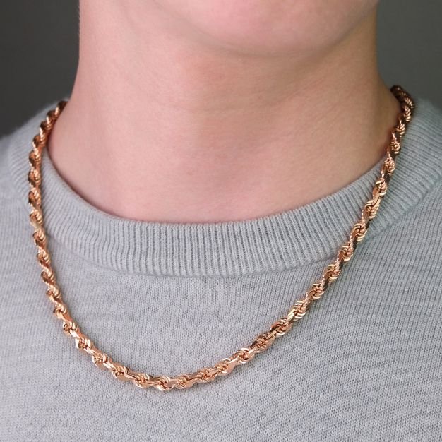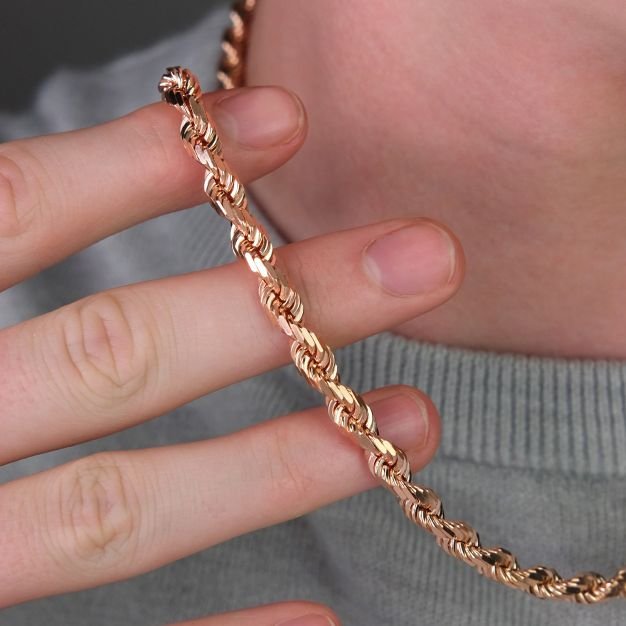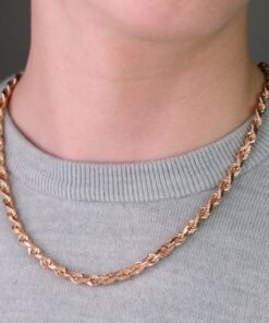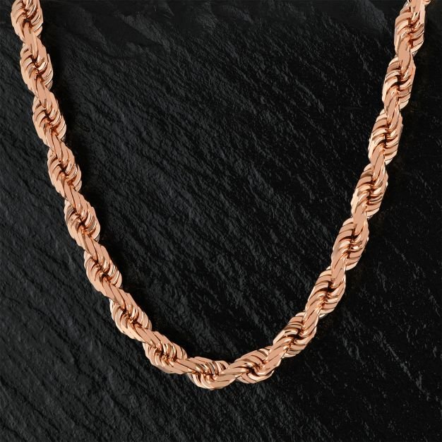 9ct Rose Gold Solid Italian Made Diamond Cut Rope Chain – 5mm